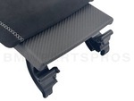 The armrest is adjustable in length and finished at the rear with an open-pored carbon trim.