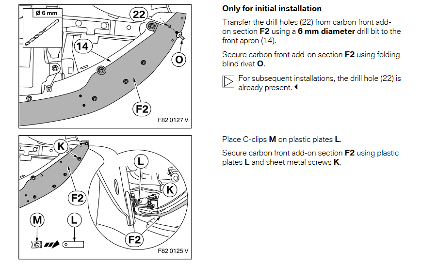 The M Performance carbon fiber front lip is designed to decrease lift in the front of the vehicle and provide a sporty, aggressive look. BMW recommends pairing the front lip with the M Performance Rear Spoiler for balanced aerodynamics and excellent visual appeal.