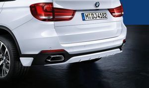 The M Performance silencer system made from stainless steel features two trapezoidal-shaped, chrome-plate tailpipes and enhances the car's acoustic properties.