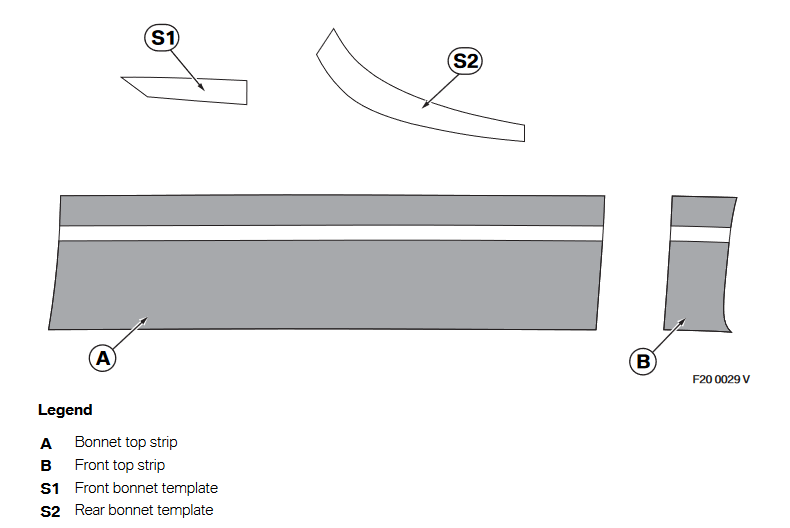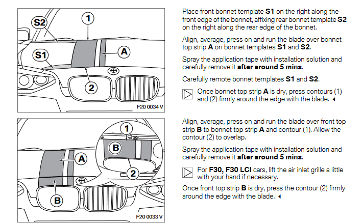 Digitally printed on a high-quality PVC (Polyvinyl Chloride) film. The BMW M Performance Sport Stripes customize and accentuate the sporty characteristics of the 3 Series. Available in black and fits perfectly over the horizontal surfaces of the vehicle (hood lid).