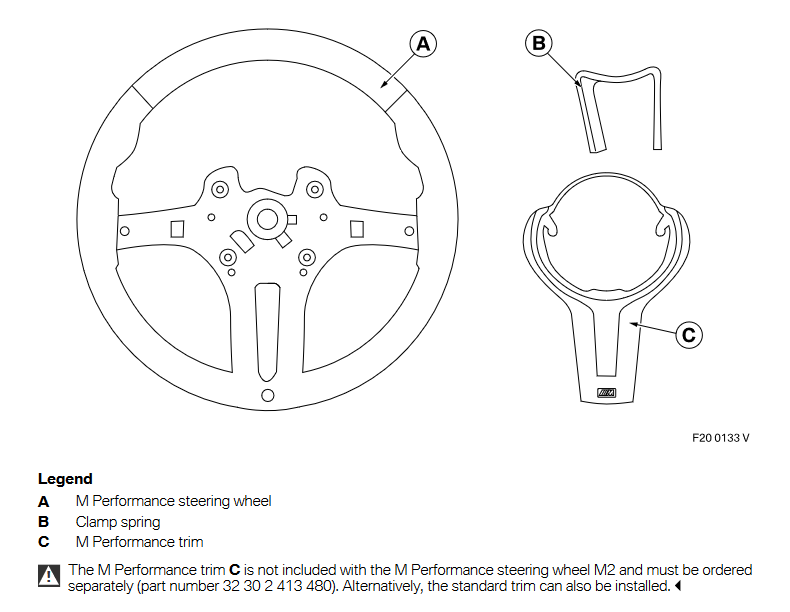 BMW M Performance Steering Wheel. Includes lower trim with carbon fiber insert. Airbag, multi function buttons, paddles, etc. not included and must be transferred from stock steering wheel.