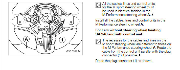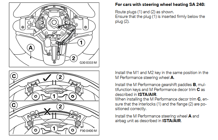When the M Performance steering wheel is installed on cars with steering wheel heating SA 248, the heating function is lost. No uncoding is required. The error memory message can be ignored.