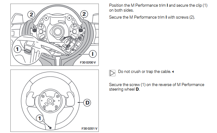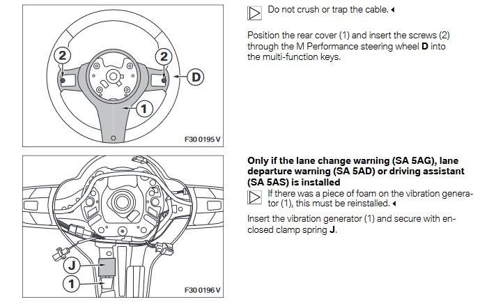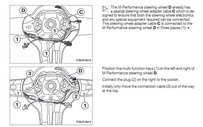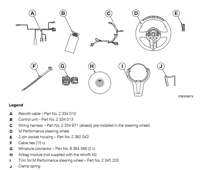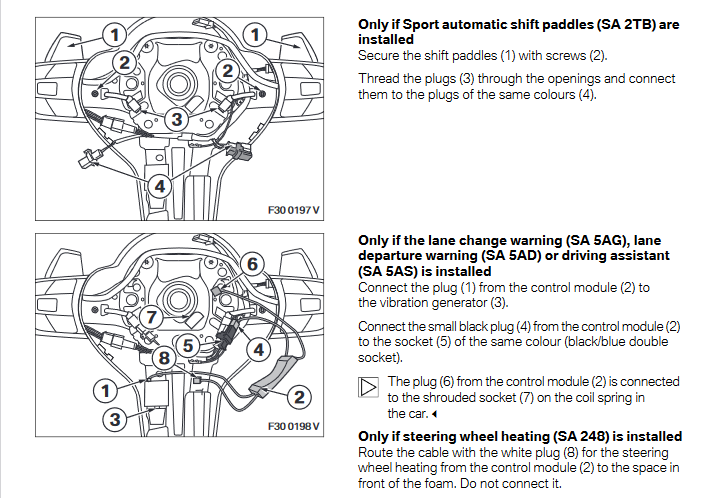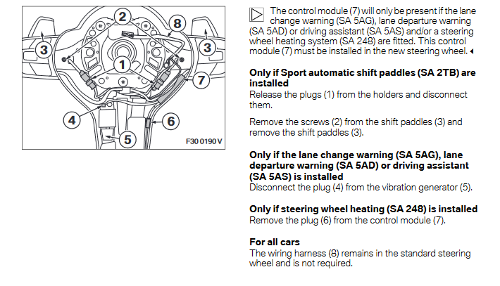 M Sport leather steering wheel (SA 710) - built after 07/2013: All parts can be adopted. Basic steering wheel- leather steering wheel (SA 240)- Sport steering wheel (SA 255) for all cars plus the M leather steering wheel for cars before LCI - built up to 07/2013.