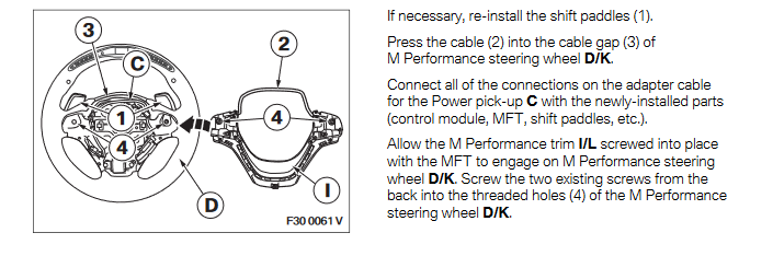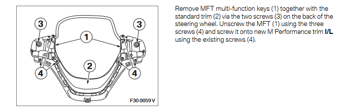 M Sport leather steering wheel (SA 710) - built after 07/2013: All parts can be adopted. Basic steering wheel- leather steering wheel (SA 240)- Sport steering wheel (SA 255) for all cars plus the M leather steering wheel for cars before LCI - built up to 07/2013.