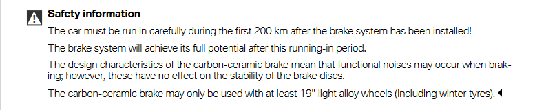 Important: Dependent on conditions and usage, features specific to the materials used can lead to operational noises particularly in wet conditions just before the vehicle comes to a halt.