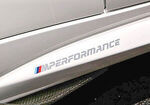 The Motorsports strips in the typical M colors and M Performance decal lend the car a sporty character, and help set it off from the rest.