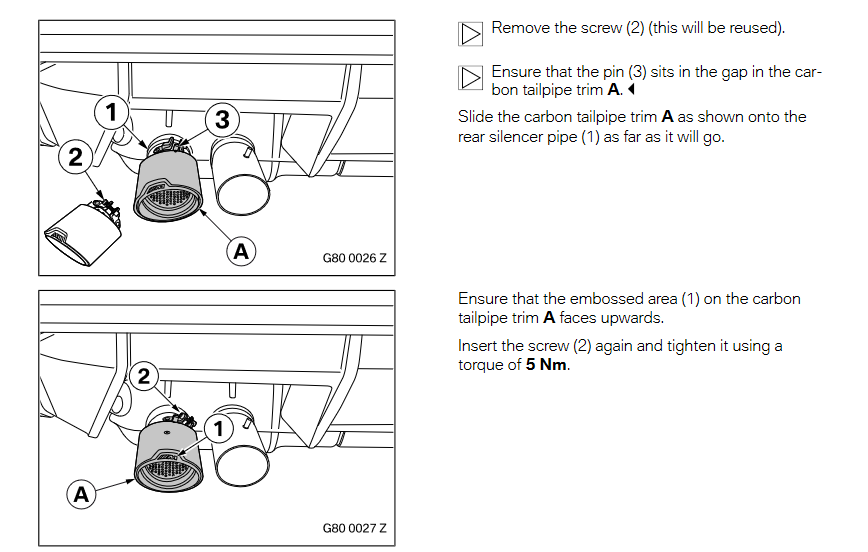 Replace your chrome or high-gloss black exhaust tips for the all-new BMW Carbon Fiber Performance Exhaust tips.
