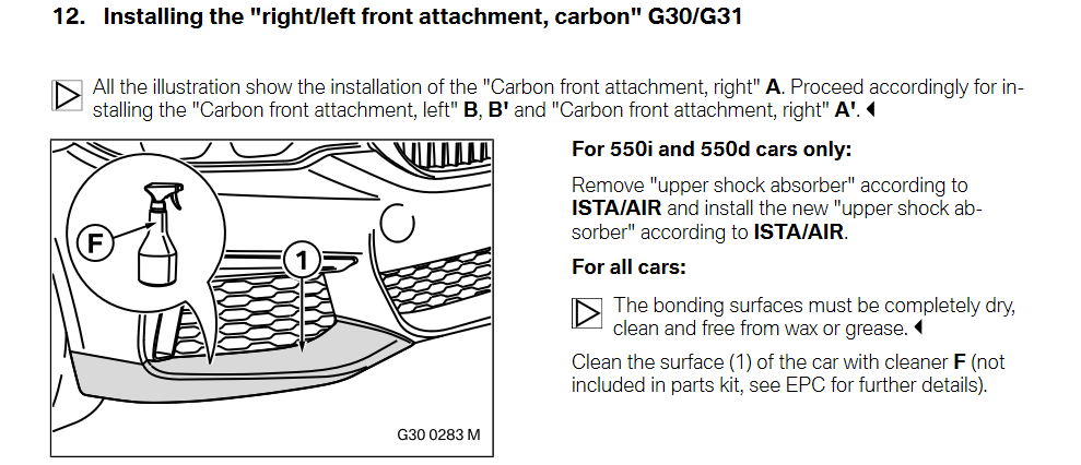The M Performance Front Splitter can only be installed on vehicles fitted with the M Sport Package.