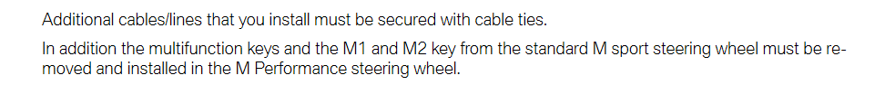 When the M Performance steering wheel is installed on cars with steering wheel heating SA 248, the heating function is lost. No coding is required. The error memory message can be ignored.
