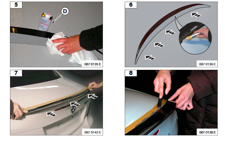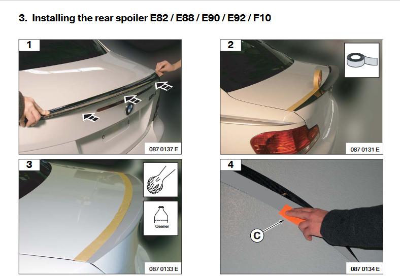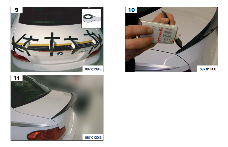 Adhesive tape is not attached to the rear spoiler but cane be purchased separately.