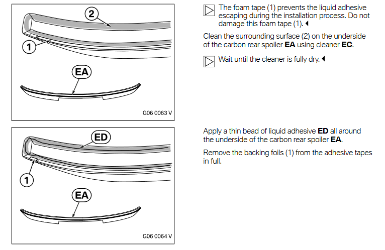 Adhesive tape does not come attached to the rear spoiler but can be purchased separately.