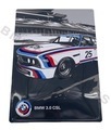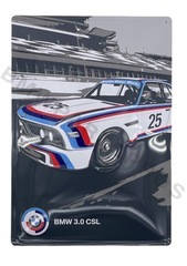 Retro sheet-metal sign with embossed race version of the BMW 3.0 CSL from the early 1970s.