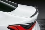 The OEM carbon fiber rear spoiler enhances the high-quality, sporty appearance of the vehicle.