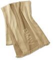 Two-tone woven scarf with frayed edge.